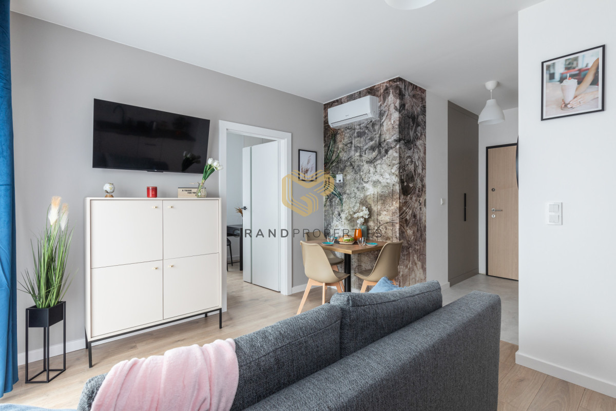 Nowoczesne i przytulne wnętrze o powierzchni 30 m² położone na 2-gim. piętrze eleganckiego budynku z windą. Duże okna i balkon sprawiają, że mieszkanie jest jasne i pełne naturalnego światła.