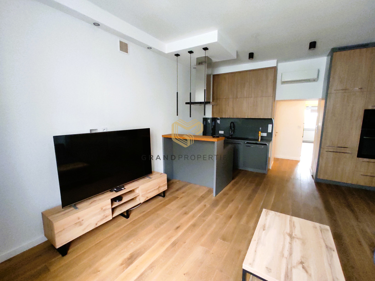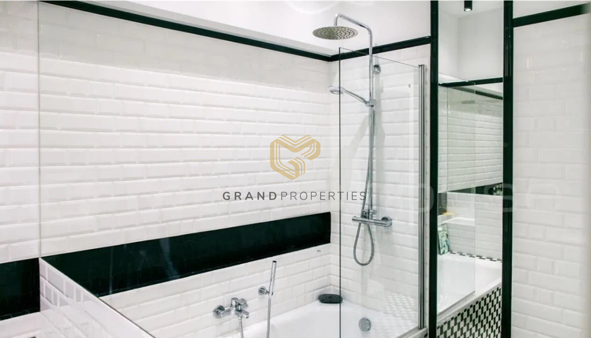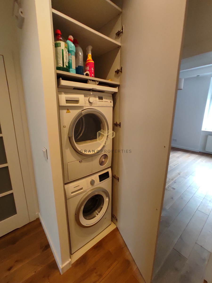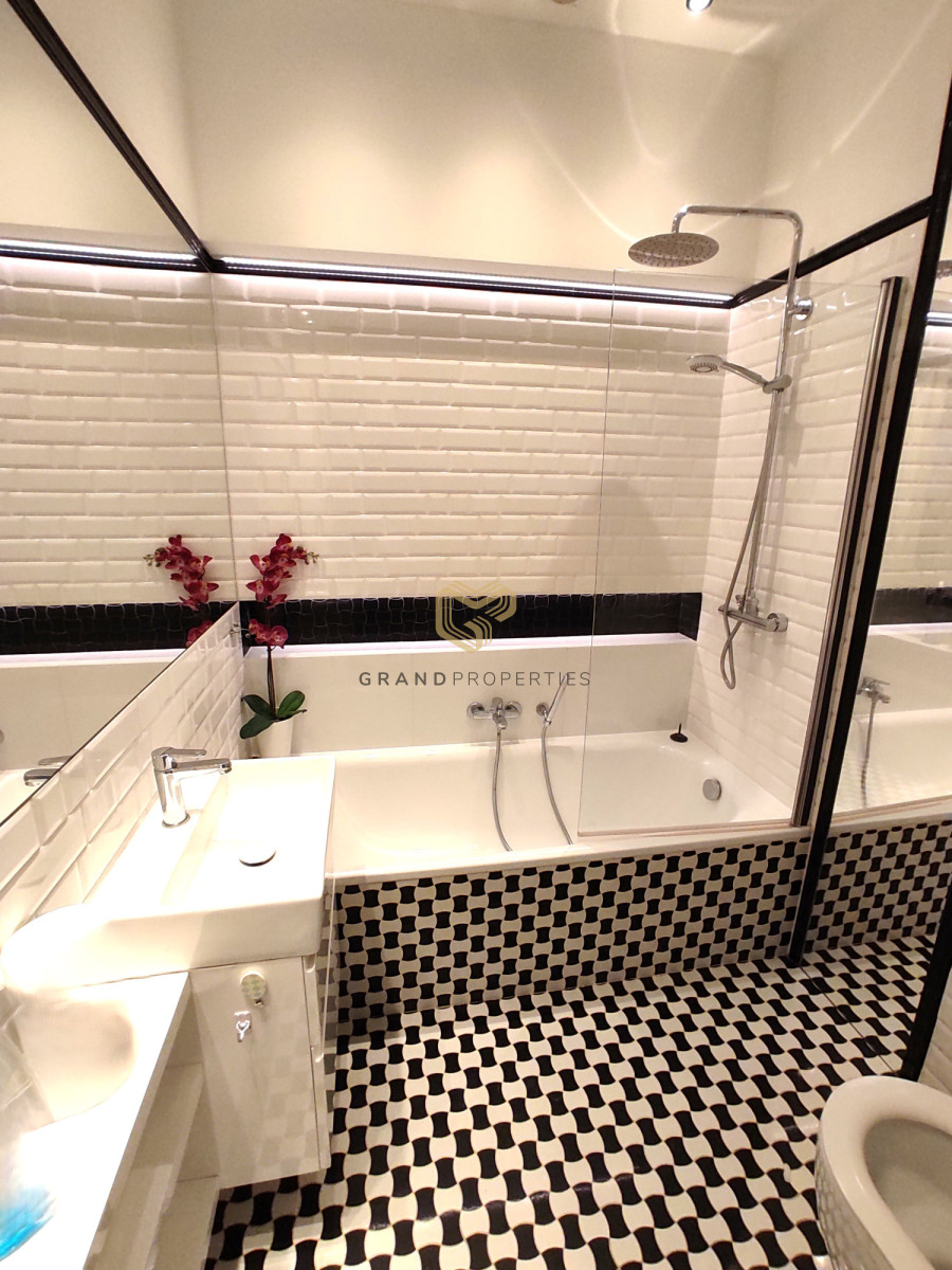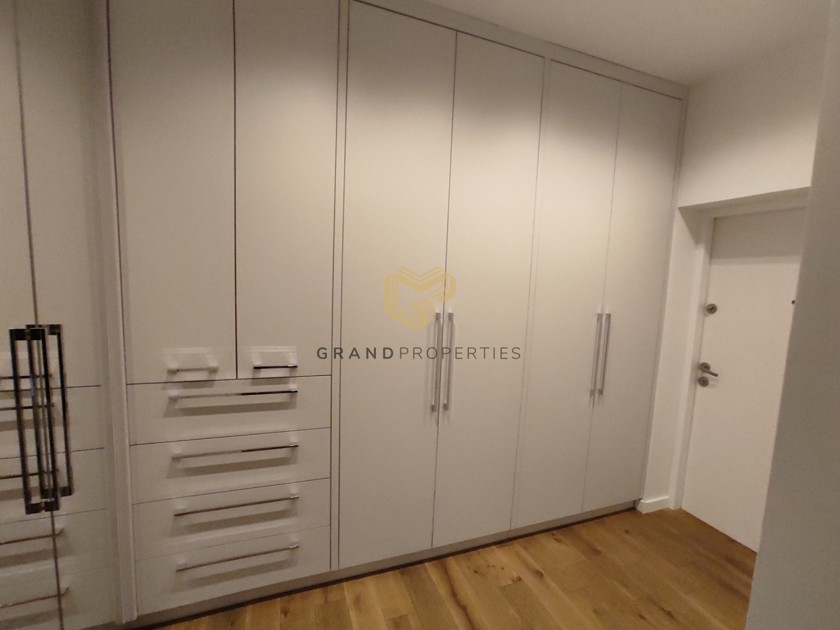 The interior of the apartment is tastefully and stylishly finished under the supervision of an interior designer. The apartment is air-conditioned and the materials used are of very high quality. The kitchen is fully equipped with high-end household appliances. In the hall you will find a lot of built-ins and wardrobes.