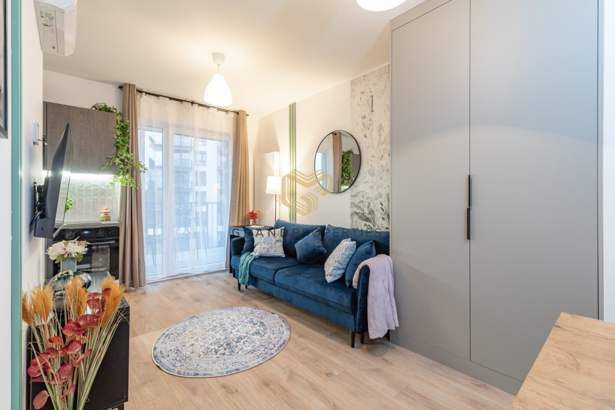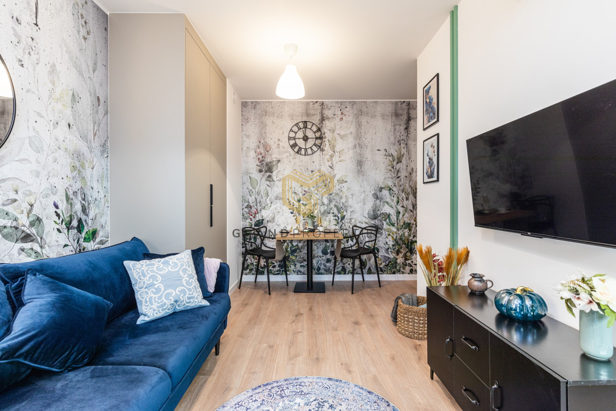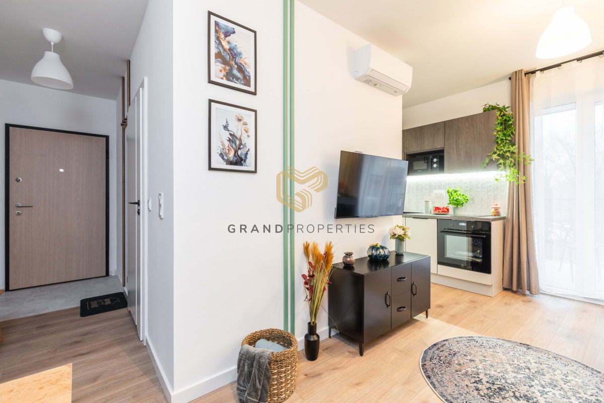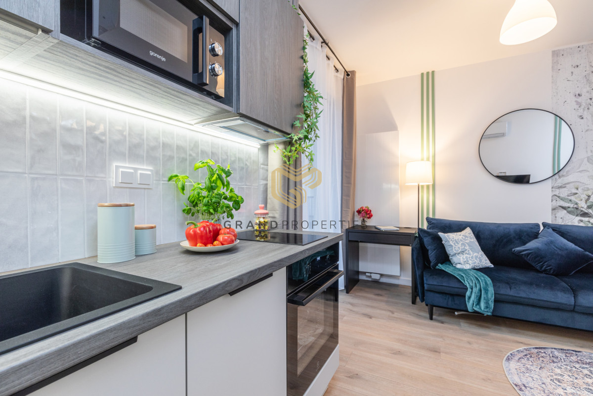 Nowoczesne i przytulne wnętrze o powierzchni 25 m² położone na 2gim piętrze eleganckiego budynku z windą. Duże okna i balkon sprawiają, że mieszkanie jest jasne i pełne naturalnego światła.