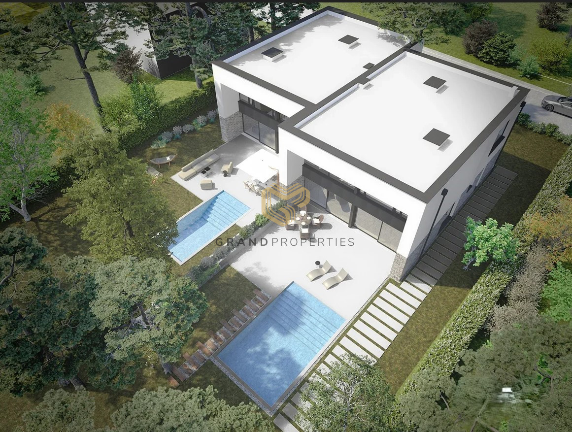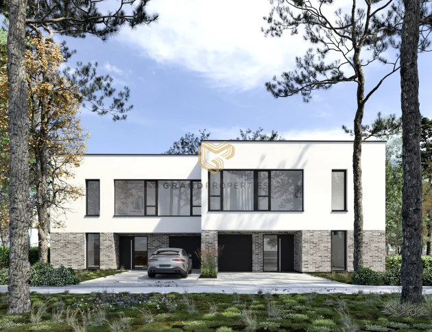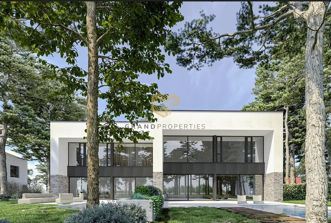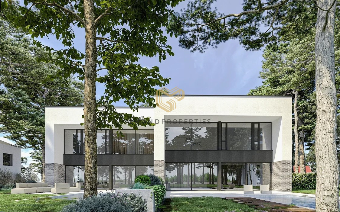Nowoczesny, luksusowy dom o powierzchni całkowitej ok. 224 mkw. położony na zalesionej działce.
