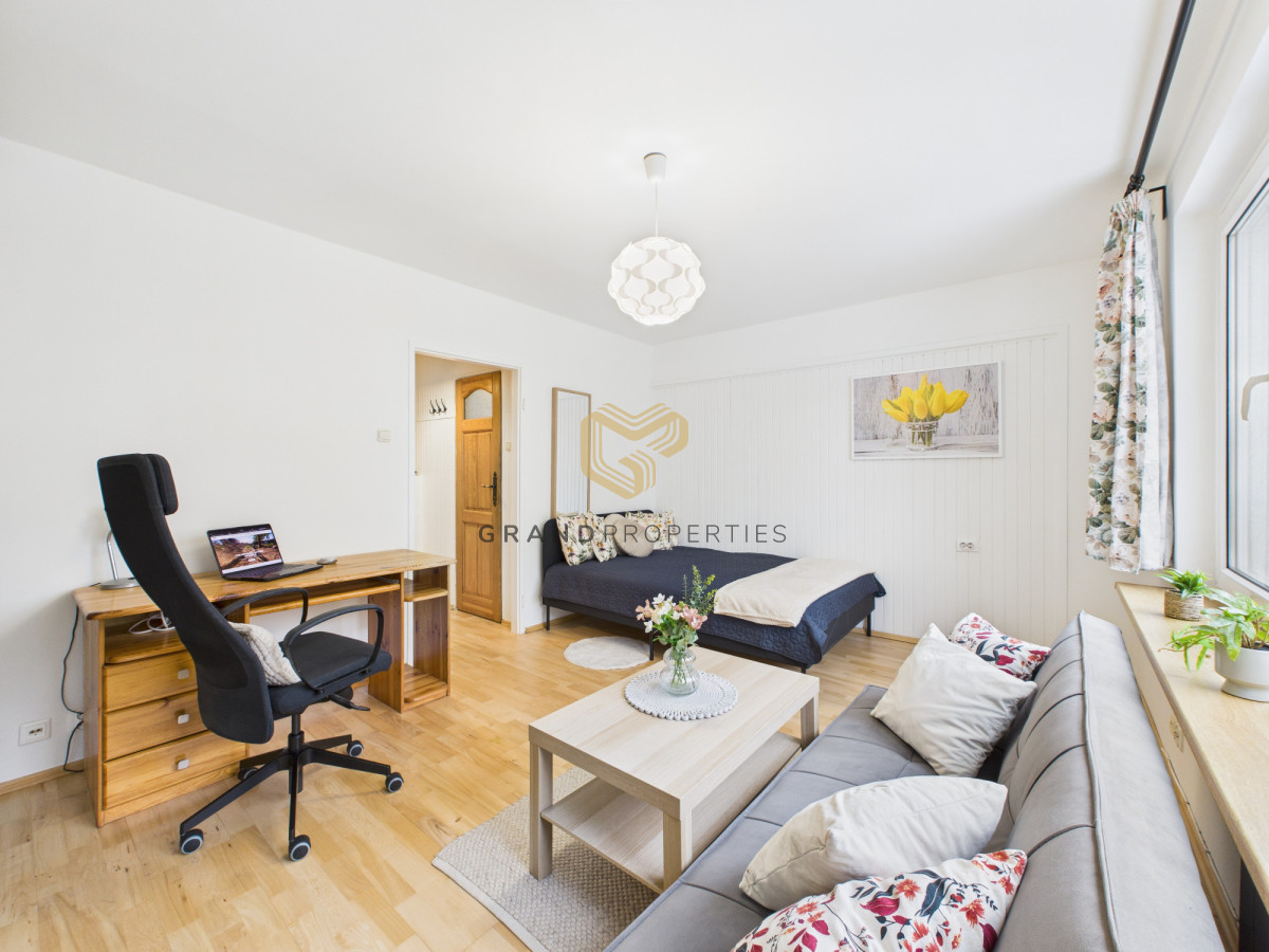 - pokój dzienny z dużą szafą, kanapą rozkładaną, stolikiem kawowym, nowym łóżkiem 140x200 i materacem, biurkiem z krzesłem.